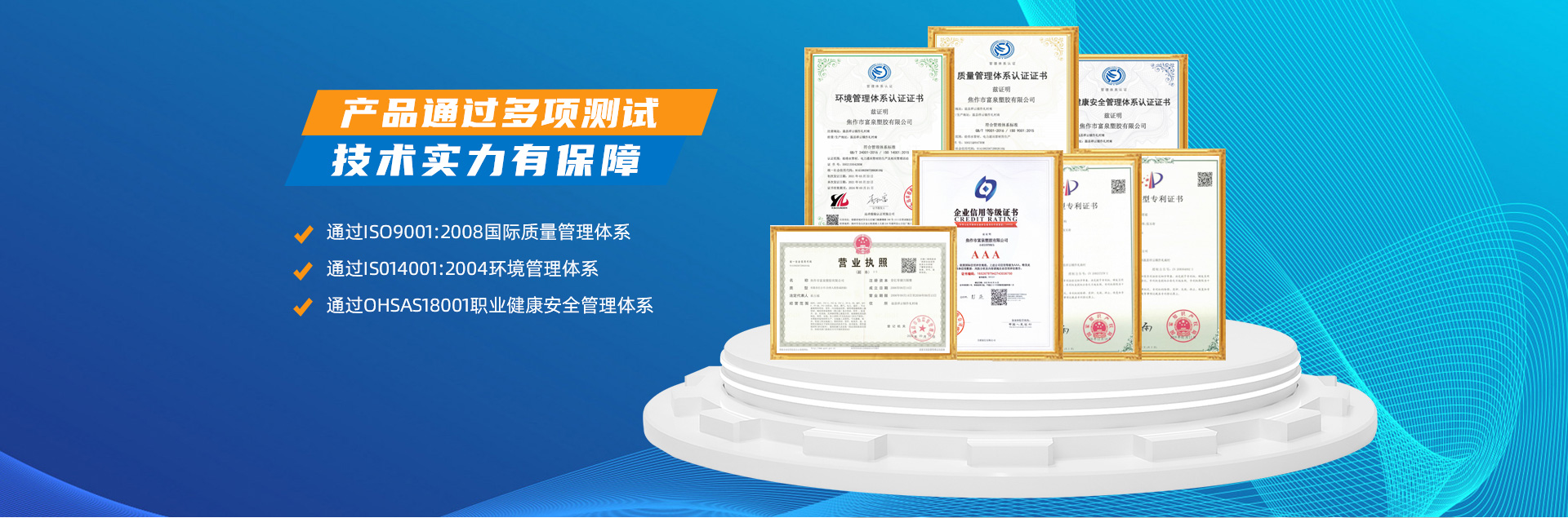 - 焦作市富泉塑膠有限公司,創立于1995年,是一家集研發、設計、生產、銷售為一體的大型管材企業。公司位于太極故里、黃河之濱一一河南焦作溫縣。公司占地128畝,現有職工210余人,其中具有中技術職稱的19人。生產、檢驗設備58臺(套),包括PVC實壁管生產線11套、PE實壁管生產線12套、HDPE雙壁波紋管生產線6套、PVC雙壁波紋管生產線5套,檢驗設備14臺(套)。主要產品有:Φ20mm-630mm、各種壓力規格的PVCU、PVC-M、PE給水管材,PVC-U節水灌溉管材,HDPE燃氣和礦用管材,DN200-800mm的HDPE、PVC雙壁波紋管及各種噴灌、滴灌工程材料。承接大中型市政供排水、飲水安全及節水灌溉等工程。 富泉塑膠公司重視產品的質量、安全、環保和節能,在同行業中率先完成了“新華節水產品認證”,全方面通過ISO9001:2008國際質量管理體系、IS014001:2004環境管理體系和OHSAS18001職業健康安全管理體系的一體化導入,并建立起規范的現代企業管理體系。公司以“質量”為先導,采用質量跟蹤、多環節把關的方法,組建具有行業水準的企業技術檢測中心,常年委托水利部節水灌溉設備檢測中心、河南省產品質量監督檢驗院對產品跟蹤檢測,并由中國人民保險公司承保產品質量。公司連續多年被河南省水利廳確定為“安全飲水設備、節水灌溉設備”定點生產企業,并獲得“中國名優產品”“質量、服務、信譽AAA企業”“河南省**產品”“河南省水利企業”“河南省守合同、重信用企業”等榮譽稱號。 富泉塑膠公司堅持“用戶為上”的服務理念,長期以來,全方面關注客戶價值,不斷提升服務水平。服務隊伍常年為客戶的產品設計、施工、安裝提供合理的方案和全程細致、周到、**、快捷的技術服務。公司自成立以來,一直堅持以人為本的宗旨,塑造企業形象,并致力于新產品的開發,憑借雄厚的技術開發能力,先進的工藝制造流程,嚴格的質量管理保證體系,優良的售后服務網絡,已成為河南省大的飲水、灌溉及排水管材設備制造商。產品暢銷全國,而且還以公司雄厚的綜合實力在業界中占據著重要的地位。